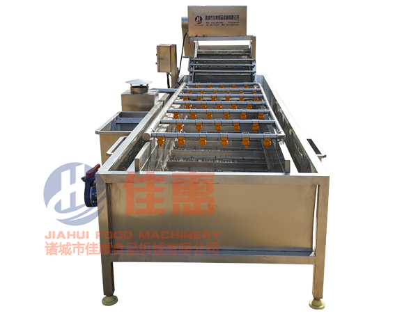 2、設(shè)備輸送帶電機可實現(xiàn)調(diào)節(jié)變速功能,被清洗的蔬菜經(jīng)過網(wǎng)鏈輸送,自動送料,自動出料,根據(jù)生產(chǎn)需要調(diào)節(jié)輸送帶輸送速度;