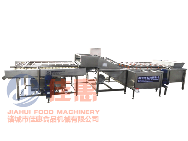 首先,需要清洗的大棗全部放入水槽,在高壓水流和強力氣泡的作用下,被充分打散、翻滾、清洗、傳送。設備上端配有高壓噴淋,產品在池中翻滾,再有高壓水沖擊,大棗表面的泥沙會脫落,通過網帶沉淀到底部隔離倉,。雜質漂浮表面,通過溢水口溢出;細沙會經過網帶沉淀到底部隔離倉,防止翻揚回流造成再度污染,并且會經過水循環過濾,在雜質箱沉淀。物料在水中劇烈翻滾攪動,清洗水經過過濾后,由循環水泵加壓通過噴嘴回沖,噴嘴方向可調,物料被噴嘴噴出的高壓水得以再次沖洗,并朝著出口方向漂移。出口處為刮板提升機,刮板提升機的速度可調(調節刮板提升機速度到所需的生產能力),將沖來的物料送至下道工序(可根據用戶要求在出口刮板提升機上加噴淋管,進一步進行噴洗)。 隨之大棗進人高壓噴淋毛輥清洗機,然后通過毛輥快速轉動摩擦大棗表面,大棗隨之轉動達到全方位清洗,同時產品上部噴水噴淋清洗,把產品表面污物、灰塵及纖維沖洗下來。 技術參數: