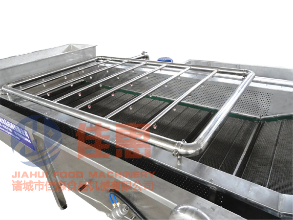 3、高壓噴淋氣泡清洗機設備中設有氣泡發生裝置(漩渦氣泵的壓力使水產生強烈翻滾的氣泡),使物料在水中呈翻滾狀態,從而達到清洗果蔬的效果。具有洗潔凈高、節能、節水、穩定可靠等特點。