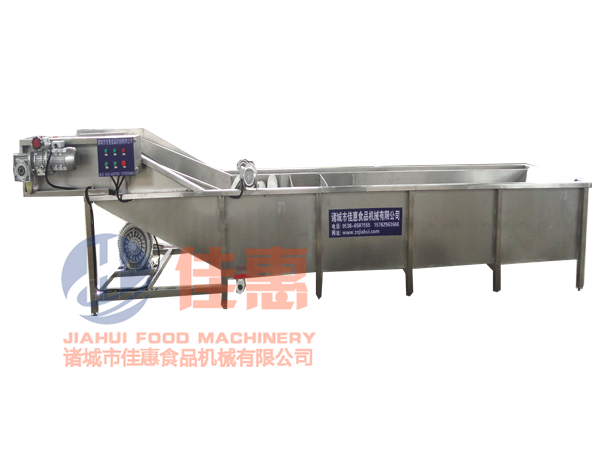 首先需要清洗冷卻的玉米全部放入水槽,在高壓水流和強力氣泡的作用下,被充分的打散、翻滾、清洗、傳送。玉米表面殘留的泥沙會脫落,沉淀到底部隔離艙,防止翻揚回流造成再度污染。從而物料上洗落下來的雜物和小蟲會漂浮在水面,然后被弧形濾網收集;然后玉米