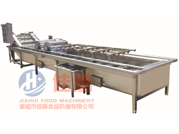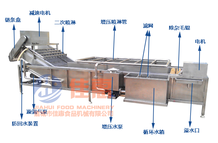 2、設備輸送帶電機可實現(xiàn)調節(jié)變速功能,被清洗的蔬菜經過網(wǎng)鏈輸送,自動送料,自動出料,根據(jù)生產需要調節(jié)輸送帶輸送速度;