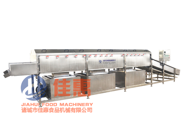 1、滾杠式噴淋清洗機(jī)(鮮食玉米清洗機(jī))由槽體、接水槽體、噴水系統(tǒng)、輸送裝置等主要部分組成。物料放置于輸送帶上,首先利用噴淋系統(tǒng)噴出的高壓水流,對(duì)物料進(jìn)行粗洗,使物料上帶有玉米毛皮、泥沙等污物脫離后落入下面的水槽區(qū),物料在輸送帶的帶動(dòng)下到下一工作區(qū)域,再經(jīng)過(guò)低壓噴淋清洗,徹底去除表面的污物,然后進(jìn)行常壓清洗,使物料清洗的更徹底、更完全。 2、工作過(guò)程中,進(jìn)水管和噴淋水管始終供水,并且各級(jí)水泵用水實(shí)現(xiàn)分級(jí)過(guò)濾、分級(jí)利用、循環(huán)供水。有效的節(jié)省了生產(chǎn)成本,然后水箱內(nèi)的污水排出設(shè)備,進(jìn)入污水回收池。 3、滾杠式噴淋清洗機(jī)(鮮食玉米清洗機(jī))采用高壓噴淋水霧清洗,有效分離被清洗物表面附著物,模擬雨水清洗基本動(dòng)作并有效避免了人工清洗中的碰、磕、劃傷等現(xiàn)象,提高了工作效率,變?nèi)斯ぷ鳂I(yè)為機(jī)械化加工。適合于各種類玉米的清洗工作。