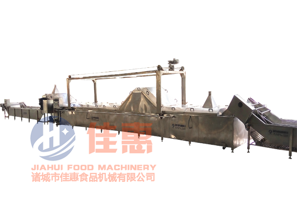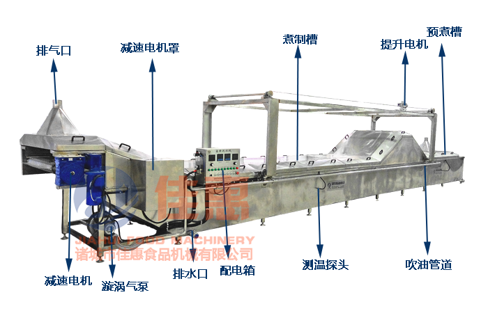 10、設備分為預煮和煮制兩段,物料現在預煮槽內過水后再進入后面較長的煮制槽內,這樣可有效避免污染整個槽體內部的水。