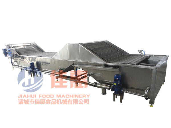 設備特點: 1、設備適用于禽類、肉類的預煮鹵制工藝,具有溫控性好,效率高,節省人工等特點。 2、入料、潤水、蒸煮、出料、等工序可連續作業,無需間斷。具有勞動強度小、功效高、便于操作、省人、省力等優點。 3、蛋白質適度變性好,提高原料利用率,蛋白質消化率>80%,一般可控制在85%高達93%,從而提高原料出品率及產品質量。 4、本機帶有內膽設計,這樣有利于泥沙和雜質的清除更有效。 設備示意圖: