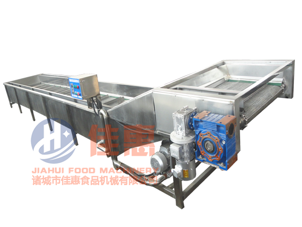 常溫水冷卻機是利用常溫水對預煮或殺菌后的果蔬、肉禽、包裝物進行冷卻,可大程度減輕人工勞動強度,提高產品質量。該設備除電機、軸承等標準件外均采用優質不銹鋼SUS304材料制作。適用于各種預煮、殺菌后的產品常溫水冷卻,該機有冷卻效果快、效率高等特點。
