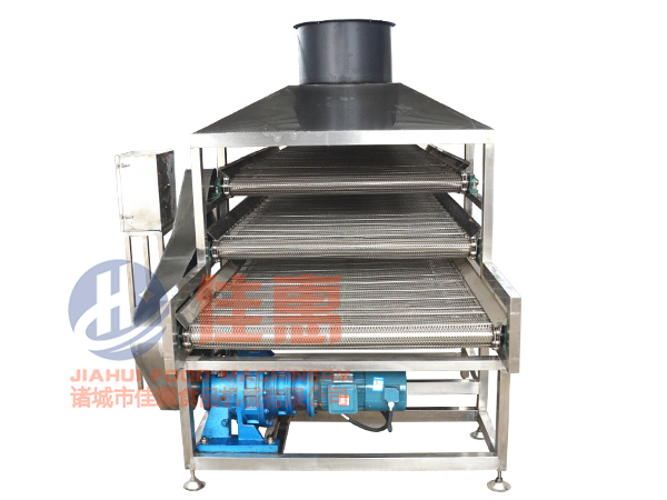 1、攤涼機是在網帶輸送機的基礎上加上風機改造后的設備,主要用于對溫度較高的產品(如豆干、豆皮、糧糟、茶葉以及油炸食品等)進行快速冷卻。設備的下端配有接油盤及排油口能對炸制食品瀝出的油脂進行集中處理,保證了操作環境的干凈。