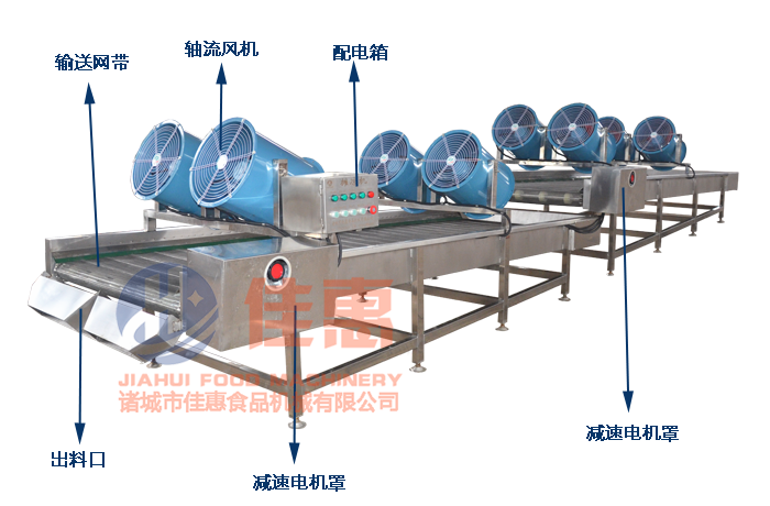 1、用優(yōu)質(zhì)不銹鋼材料制造,清洗方便。 2、網(wǎng)帶輸送中帶有自動翻身功能,確保物料兩面都能吹風(fēng),風(fēng)冷效果好。