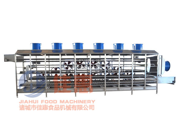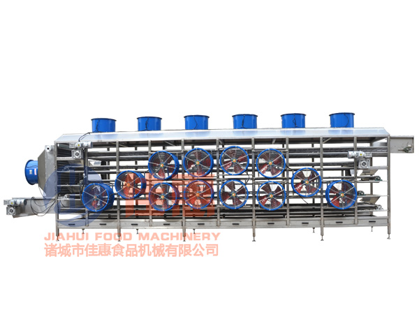 1、用優質不銹鋼材料制造,清洗方便。 2、網帶輸送中帶有自動翻身功能,確保物料兩面都能吹風,風冷效果好。