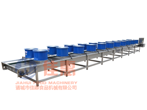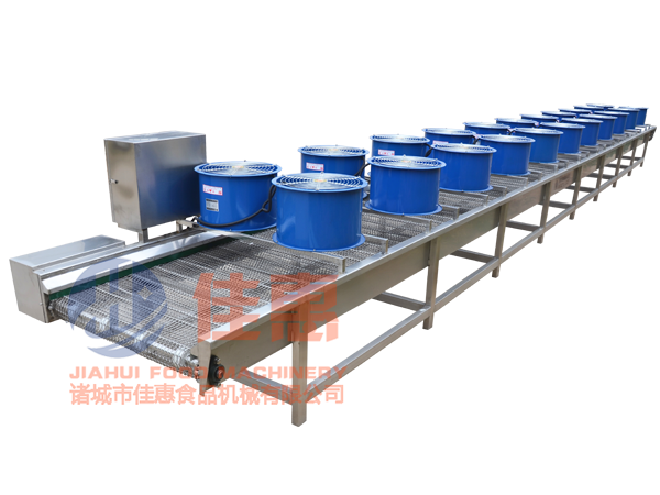 把已鹵煮、油炸過的物料(豆干、油炸食品)倒入振動篩上,通過振動篩的振動,自動分散攤開,然后自動進入攤涼機,攤涼機有強流風冷風機,可以給物料進行強制降溫,攤涼機具有自動翻轉的功能,可以把豆干的兩面進行風吹除水、降溫,直至物料冷卻降溫。