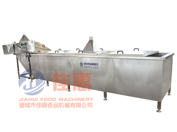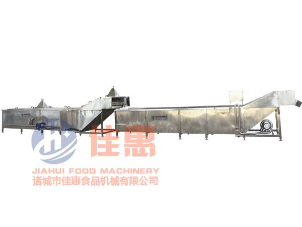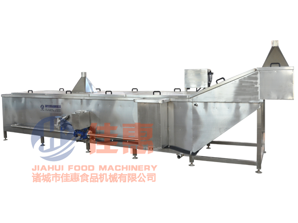 4、設備鏈條轉角處全部采用鏈輪轉彎,減輕鏈條拉力; 5、循環水泵前邊加有過濾系統(采用三角網孔過濾),以防止槽內雜質抽到泵中和長時間在殺菌(冷卻)槽內循環;過濾器清理口采用無工具拆裝,讓清理雜質簡單方便。在過濾器前邊和循環泵的后邊分別裝有閥門,以方便在過濾器清洗和循環泵的檢修過程中把整槽水放掉以減少對資源的浪費。 6、為保證及時供給蒸汽和節約多余蒸汽,本機采用蒸汽自動調節閥和手動控制閥微調控制。