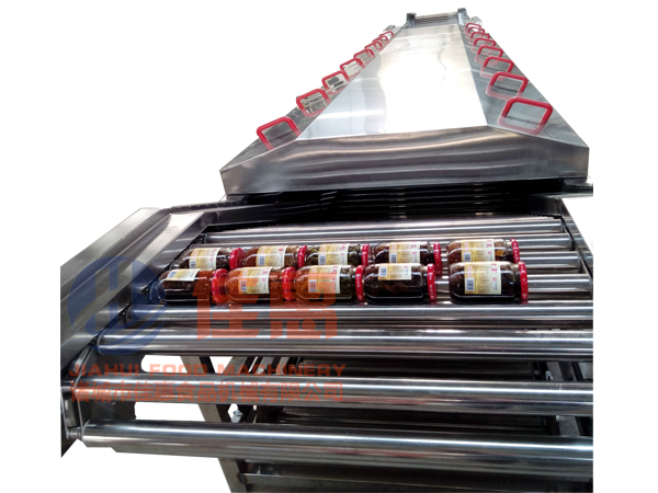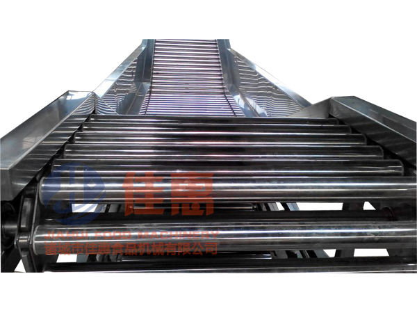 1、該設備由不銹鋼滾杠作為輸送載體,是灌裝、瓶裝產品殺菌的專用設備。結合公轉自轉原理設計而成的滾杠式輸送網帶,使網帶在輸送物料過程中,滾杠在導軌的作用下,實現了自傳。滾杠的自轉帶動物料本身也發生連續性轉動,使物料在運行過程中,能全方位的接受熱水殺菌,無死角。 2、整機采用不銹鋼制造(電器元件除外),清洗方便,滿足國家對食品衛生的相關規定;