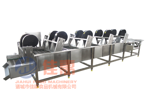 3、本機可進行大批量連續生產,并保留產品的營養成分及顏色等,風干面積、溫度、網帶運轉速度等均可調節,以適應蔬菜果品的特性及品質要求,可根據蔬菜果品要求特點,采用不同的工藝流程及添加配套必要的輔助設備。