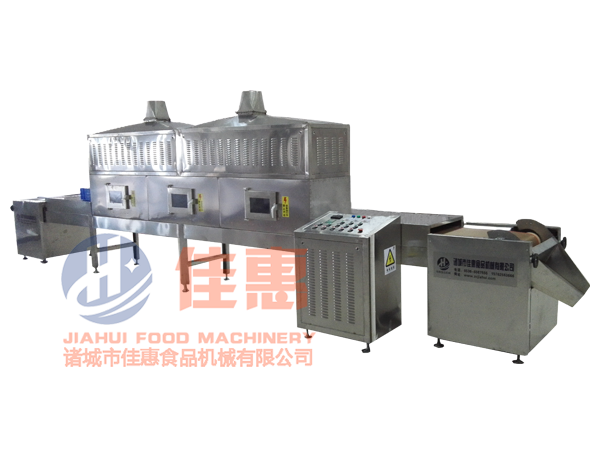 該CXW-12KW微波干燥機是由3個微波加熱單元組成的新型微波干燥設備,共18只松下工業特制磁控管組合工作,其特點是功率隨時可調,加熱快速、均勻,高效節能、工藝先進、操作簡便、安全無害,不需要冷卻水,磁控管抗載能力強、壽命長。 主要技術參數: 1、 電源電壓U:交流三相380±10%V 2、 額定輸入視在功率S:≤18KVA 3、 微波輸出功率P:12KW(可調) 4、 微波輸出頻率F:2450±50MHZ 5、 微波泄漏MW/C㎡:≤5(國家安全標準) 6、 傳送速度V:0.5~5M/min 7、 進口料口高度H:60mm 8、 傳送帶寬度約W:500mm 工作原理: 設備運行時,由微波發生器產生微波,經微波激勵腔傳輸到加熱器中,物料由輸送帶傳輸送至微波加熱器中,此時物料中含有的水份在微波能高頻振蕩的作用下蒸發,通過排濕風機排出加熱器外面而帶走水分達到高溫培烤目的。