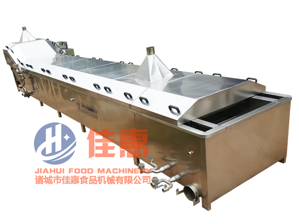 3、設備帶有自動恒溫裝置,雙層保溫材質,漂燙的溫度在常溫-100℃之間可調,加熱可以采用電加熱和蒸汽加熱兩種方式。 4、當漂燙機工作時,漂燙機內的漂燙水能循環往復有序流動及充分混合,趨使漂燙機內水溫均衡一致。既達到提高物料漂燙、預煮質量的均勻性和穩定性的目的,又可避免因漂燙機內局部溫度過高而燙傷物料。漂燙水循環裝置結構簡單,運行可靠。 5、物料經前段傳送帶輸送至預煮區域,預煮槽底部設有蒸汽管道,管道上設有蒸汽出口,通入蒸汽后蒸汽能夠均勻分散在蒸汽槽內,使槽內溫度均勻無死角。