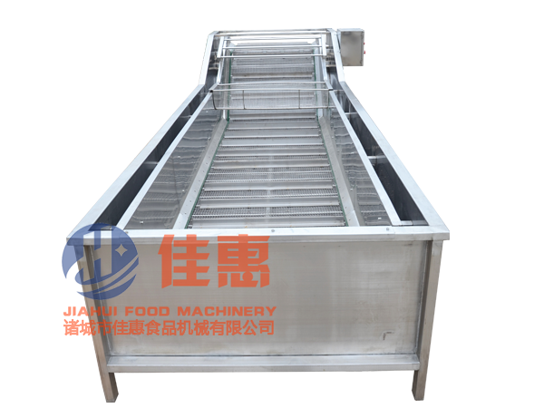 1、破袋挑選機設備除電機、軸承等標準件外均采用不銹鋼SUS304/2B材料制作,完全符合出口食品衛(wèi)生要求。設備中設有氣泡發(fā)生裝置,使物料呈翻滾狀態(tài),去除包裝袋表面油垢、污漬。油污漂浮物可以從溢流槽溢出,沉淀物從排污口排出,以達到清洗的目的。同時,包裝袋破損的產品會浮在水面上,被收集濾網收集,以防進入之后流程裝箱后造成二次污染。