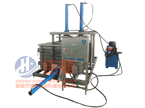 1、液壓壓榨機主要由機架、油缸、壓力油泵、壓蓋、電機、油箱、桶組合而成。 2、底座、壓蓋及料桶采用優(yōu)質304不銹鋼及不銹板材包裹,符合國家食品衛(wèi)生要求,噪音小,效率極高,維護方便。 3、該機是一部液壓壓榨機,液壓壓榨機的好處是壓力大、噸位大; 4、我們可以根據(jù)你的產(chǎn)量設計你需要的設備的大小,根據(jù)物料來確定噸位的大小。 設備特點: 1、設備工作壓力可設定,壓榨時間自由設定:包括單次壓榨總時間和短距離壓榨往復頻率均可設定。 2、手動自動可轉換:使用時一般先采用手動方式,下行至一定位置時切換至自動,自動壓榨時間完成后,壓盤自動復位。 3、主體采用優(yōu)質SUS304不銹鋼制作,符合國家食品行業(yè)使用標準。 4、本機適用于豆制品、腌漬菜等加工行業(yè)中使用,進行壓榨脫水的主要設備。 5、結構簡單、堅固耐用、維修方便、 壓力大、生產(chǎn)效率高。 6、除進出料口外,其余采用密封結構,使用環(huán)境清潔衛(wèi)生。 7、壓榨機壓力和時間可根據(jù)工藝要求設定。 設備參數(shù): 規(guī)格:200L醬菜壓榨機,300L醬菜壓榨機,500L醬菜壓榨機 型號:單桶醬菜壓榨機,雙桶輪換式醬菜壓榨機 電源:380v