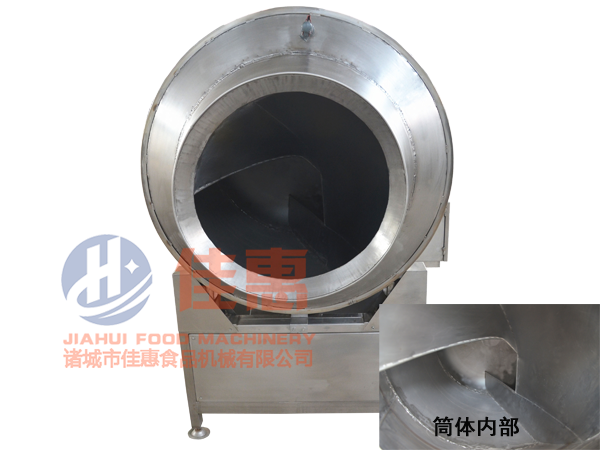 拌料機全部由優質不銹鋼制造,正傳拌料,翻轉出料,設計合理,運行噪音小 漿葉圓弧形設計獨特,使調料和產品攪拌均勻,一次拌料只需幾分鐘。該系列滾筒拌料機具有自動拌糖拌料的特點,拌糖、粉狀、顆粒、豆干、辣椒、泡菜等產品拌料均勻,對料塊損傷小,出料時產品與糖料、粉料自動分離,產量高、占地小,最大產量可達800Kg/h。 設備特點: 1、效率高,混料速度快;