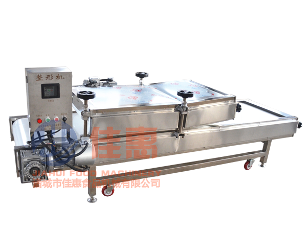 此設備是專門針對醬腌菜、金針菇、莖類、肉類等食品包裝袋的外觀修飾整形,根據產品包裝大小和產品需要的整形要求來調節定量滾筒和整形輥的高度。由皮帶輸送,進料倉內的產品經定量滾筒定量后,并實現往返整形后,本機連續運轉整形,產品源源不斷進入下一生產線。