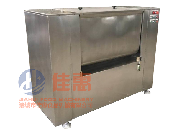 設備簡介: 拌餡機是工作效率很高的一種食品機械,它具有很好的通用性,可以廣泛的應用于肉食行業、 面食行業、蔬菜行業、藥品行業等多種行業中,主要用途是將餡狀、粒狀、粉狀、漿狀物料通過攪拌而達到混合均勻的目的。 設備功能: 對粒狀、粉狀、泥狀、糊狀、漿狀物皆有很好的適應性和混合效果。對塊狀物有較好的保型性,具有正反轉功能,具自動出料功能 設備特點: 1、效率高,混料速度快 2、自動出料,勞動強度更低(選用配置,默認為手動) 3、獨有的旋齒排列形式使物料混合更均勻,單次裝料量更多 4、獨有的三層密封保護使設備使用壽命更長,清洗更方便 結構特點: 本機采用了扇形的攪拌葉片,且葉片呈正反形式排列,能使物料翻動更均勻、機械轉動部分受力更均衡,震動更小,使用壽命更長。攪龍的整體結構更加符合衛生要求,軸頭采用雙層密封,防水的滲透能力更加完善,能使內部軸承部分更耐用。全自動可傾式出料更方便而且使工作效率大大提高,同時降低了工人的勞動強度。 設備參數: 型號:BX-200 功率:2.2kw 電壓:380V 絞龍轉速:75轉/分 單次裝料量:150KG 尺寸:1550*700*1100 適用范圍: 拌餡機是用于混料的必備設備,是制作風干腸類產品、粒狀、泥狀混合腸類產品、丸類產品的首要設備,同時也是生產水餃、餛飩類面食產品的可選設備。 安裝、使用及注意事項: 1、設備應平穩的安裝在堅實的地面上。 2、檢查箱體內是否存有雜物,將箱內清理干凈。 3、接通電源,先觀察電源指示燈是否發亮,如果不亮,只需將電源輸入線的任意兩線相互換接即可。裝料時應不超過箱體的2/3為宜,攪拌時由內旋外旋間轉換一般由停止過渡。 4、禁止堅硬的塊狀物進入轉動中的攪拌箱內。 5、出料時將鎖銷拔出,即可按出料按鈕出料,回位后將其鎖住。出料過程中絞攏亦可轉動, 絞攏轉動時嚴禁身體的任何部位接觸絞攏,以免造成不必要傷害。 6、使用完畢清理設備應在斷電情況下進行,應用潔凈的濕布擦洗,禁止用水直接沖洗(箱內可在傾倒狀態下水洗)。 設備的維修與保養: 設備在使用一年后,應對減速機進行換油保養,在保養過程中,要注意不可將設備內部的電器位置移動。尤其注意兩個行程開關的行程距離的準確性。若需要重新調整時應及時按動出料、復位和急停開關,防止鏈條將設備拉壞或損傷減速機。 特別說明: 該系列設備可根據用戶的實際產品生產需要進行設計,也可以根據用戶的實際產能要求制作具體尺寸型號規格。 |