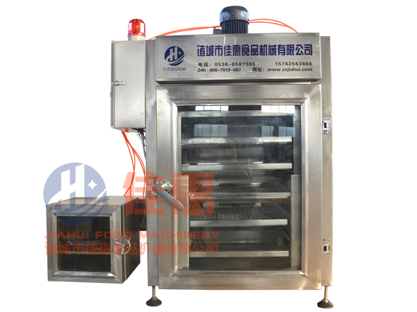 使用注意事項: 1、煙熏爐開機前首先檢查煙熏爐爐體內部及煙熏爐發煙爐底盤有無雜物; 2、檢查完畢后打開煙熏爐的電源; 3、點按“工藝選擇”,根據產品的熏制要求及工藝流程來調整、選擇所需要的工藝;同時調整好相應的溫度和時間,一般情況下煙熏爐烘干的溫度設置在70度以內,蒸煮溫度不過95攝氏度;煙熏爐設定完畢后點按“工藝啟用”,返回后點按煙熏爐上的“監控畫面”,按“始動”后煙熏爐設備即按所設定啟用的工藝參數進行工作; 4、煙熏爐烘干所需蒸汽壓力不小于0.3mpa;煙熏爐蒸煮時所需壓力為低壓,以不高于0.15mpa為宜,如煙熏爐壓力過高則產品快速升溫,極有可能降低產品品質;煙熏爐蒸汽壓力的調整通過煙熏爐電磁閥前部的閥門控制; 5、產品中心溫度由煙熏爐尖頭的溫度探頭來感應,一般是插入產品內部;煙熏爐爐內溫度由圓頭的溫度探頭感應,放在煙熏爐爐體內部自然下垂即可; 6、如遇到緊急情況應立即按下煙熏爐面板上的“急停”開關,故障排除后方可再開煙熏爐; 7、每天工作完畢應對煙熏爐設備進行清洗,煙熏爐清洗時應關閉爐門,打開煙熏爐清洗閥門(可同時點按‘試車功能’中的‘高壓閥’和‘風機高速’,提升煙熏爐爐體內部溫度,以提高煙熏爐清洗效果);煙熏爐爐體內部的清洗可用堿性溶劑擦拭; 8、全部工作結束后,應再次檢查煙熏爐爐內是否有異物,煙熏爐的發煙爐內是否有明火,全部檢查完畢無問題后關閉煙熏爐的電源、壓縮氣、蒸汽、自來水后方可離開現場。 煙熏爐常用的幾種煙熏方式: 1、常用的也常見的是糖熏,采用紅糖、白糖、冰糖或者糖精發煙。 2、木熏,采用木頭顆粒或者木屑等。 3、糖加木熏,果木顆粒攪拌一點糖作為發煙原料。 4、純大米、小米為原料,悶燒發煙,也可在米粒里面攪拌一部分糖。 5、米糠、稻殼等原料,與木粒原理相同也可攪拌糖煙熏爐。 6、茶葉、甘蔗等、可以拌入一部分水,加入水之后,煙霧濃度變密。 烘烤煙熏是很多食品延長保質期,改善產品風味的慣用辦法,伴隨現代化食品工業的蓬勃發展,現在煙熏食品大多是為增加改善產品的風味和色澤。佳惠機械生產的煙熏爐,可以對食品進行蒸煮、烘烤、烘干、熏色加工處理。烘烤、熏色一次完成,生產效率高。機器在工作過程中可以監控工作室內部溫度和產品內部溫度,在控制面板上設定蒸煮烘干煙熏的時間溫度,啟動機器后,機器工作過程中自行調節溫度。熏色的原料多種多樣,根據地區飲食習慣差異性,產品工藝和市場地位,有采用大小米,茶葉,甘蔗,紅白糖,木粒木屑等等。悶燒發煙,上色效果好。 雞鴨等禽類產品以糖熏居多,豆制品以木熏居多。其他茶熏、米熏等受眾相對于糖熏和木熏市場較小。 適用范圍: 全自動煙熏爐是把生肉加工成熟食制品的關鍵性設備。可蒸煮、熏制各種香腸、火腿腸、干腸、臘腸、豬頭肉、肉條及羊肉串等,亦可加工豆腐干、火腿、雞、鴨、鵝、魚類、牡蠣等需要蒸煮、烘干、煙熏上色的食品。 特別說明: 該系列設備可根據用戶的實際產品生產需要進行設計,也可以根據用戶的實際產能要求制作具體尺寸型號規格。 |