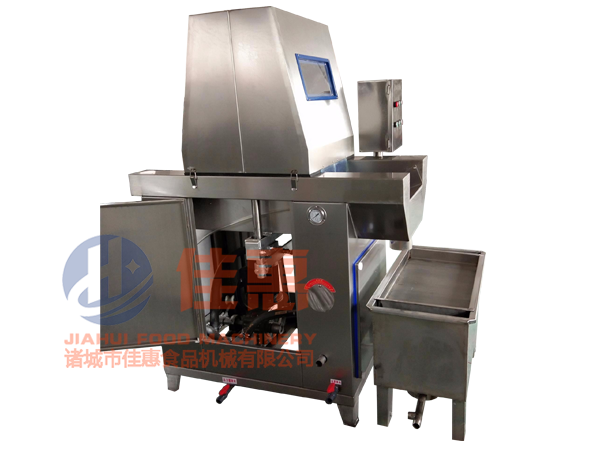 設備簡介: 鹽水注射機是將鹽水、淀粉、大豆蛋白及輔料注入肉中充分腌漬,依靠先進的技術、利用機械裝置將腌制劑通過注射針注射入產品,使之在全自動鹽水注射機內均勻分布達到快速腌制、增加調味、保持肉食營養、強化口感的目的。 鹽水注射機通過帶有針孔的注射針將鹽水槽內鹽水注入大塊產品中,使鹽水更快滲透產品整體。鹽水注射機通常搭配滾揉機一起使用,鹽水注射機減少了產品滾揉的工藝時間,滾揉機解決了鹽水注射機注射后鹽水滲透不均勻的問題,兩者相輔相成。 設備構造: ①本機采用優質不銹鋼材料,選用不銹鋼泵,設計合理,維護容易。 ②為使注射機和小肉塊更加分離徹底,該設備設計了四層不同的過濾功能,能及時把小肉塊排出注射液以外,有效地保證了注射針孔不被堵塞。傳動鏈條可拆卸,清洗方便,針頭拆裝容易,便于更換。 ③本機注射壓力可根據產品不同在0.1-0.8MPa之間調整,壓力表顯示注射壓力直觀、方便。 ④本機采用變頻型調速器,鏈條步進距離和步進速度及針頭注射速度同步可調。 ⑤本機設有自動保護針頭裝置,注射針碰到硬物時可隨之抬起,免受損壞。 ⑥本設備除用于肉類加工外,通過更換針頭還成功應用于魚類、海參、禽類等產品的注射加工。 設備特點: 1、本設備采用優質不銹鋼制作,設計嚴謹、結構合理、操作簡便、傳動鏈板可拆卸,清潔衛生,清洗方便,是肉制品加工企業必不可少的設備。 2、本機可將鹽水及輔料配制的腌漬劑均勻的注射到肉塊中,縮短了腌漬時間,大大提高了肉制品的口味及出口率。 3、本機設計嚴謹 ,結構合理,操作簡便,是肉制品加工過程中的理想設備。 4、用戶可根據工藝要求,通過調節步進速度、步進距離、壓肉板間隙及注射壓力,將腌漬液定量、均勻、連續的注入肉中,從而實現產品的注射效果。 性能優點: 1、鹽水注射機主要應用于各種肉制品的快速入味,通過針注射到肉內,達到快速入味的一款設備。 2、使肉質嫩化、松軟、不僅縮短了腌漬時間,而且大大提高了肉制品的口味及出品率。 鹽水注射機采用齒形步進送料,步距準確,肉料由三組可拆卸的格條支撐,注射針采用彈簧控制,真正能夠達到帶骨注射。 3、注射壓力、注射率、步進距離和速度,可根據注射物料大小以及被注射物的組織結構,可任意調整,能夠達到理想的注射效果。 4、該機為防止針頭堵塞采用四級過濾,操作簡單,維修方便,是肉食加工的理想設備。 5、整機采用304不銹鋼制做而成,注射針采用單針單管,獨立彈簧設計,遇到骨肉可以自動彈回,保證針頭不備損傷,延長設備使用壽命。 主要技術參數: