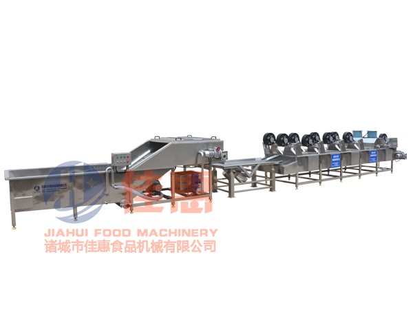 該流水線主要用于高低溫殺菌后,產品表面油垢、污漬的連續清洗及風干,可按需要訂做,并可直接并入裝箱線實現流水化生產。該機整體使用SUS304不銹鋼制作,內設螺旋蛟龍系統、循環水噴淋系統、凈水噴淋系統,污水及雜質經水箱過濾后可循環利用,充分利用水源,節省生產成本。