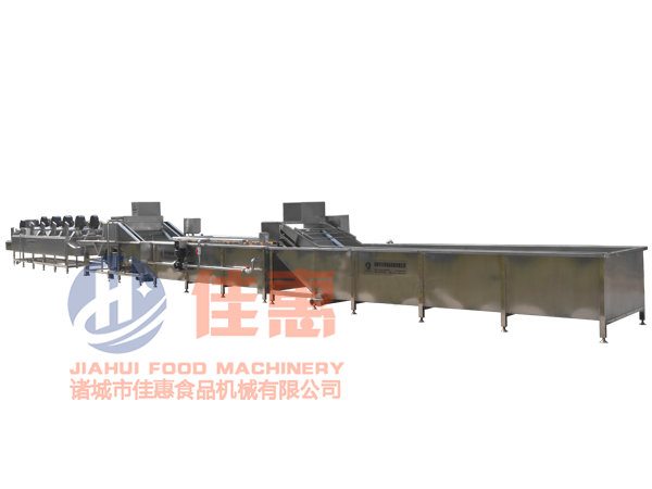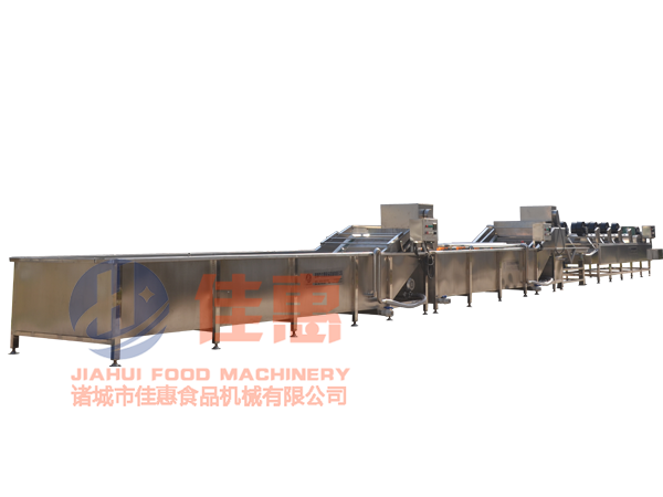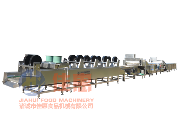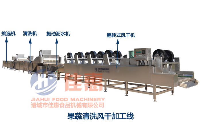 果蔬加工流水線設備由挑選機、高壓噴淋氣泡清洗機、輸送機、提升機、振動瀝水機、翻轉式風干機、單層烘干機或多層烘干機等多臺設備組合而成,設備組合可根據需求搭配。