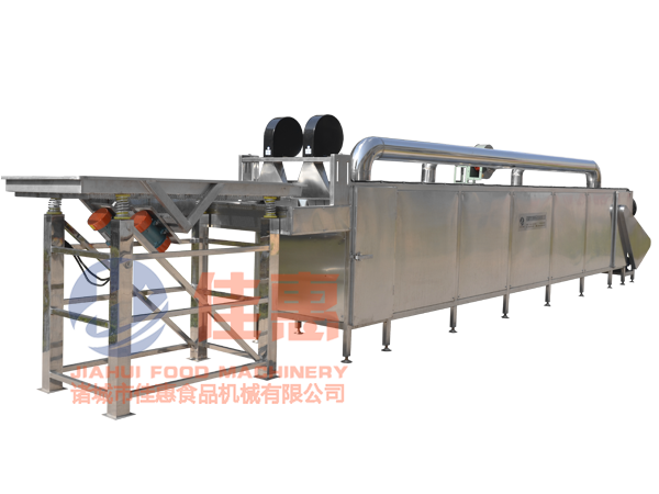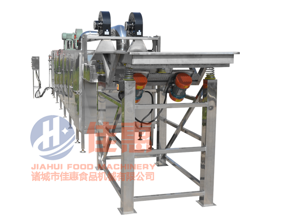 2、翻轉式風干機:物料通過網帶傳輸進入,經多次翻轉,以實現物料的多面受風及受風的均勻性,通過離心風機的高壓風力將物料冷卻或將表面水分吹干,風嘴成風刀狀,有效地提高了風量壓力,使物料表面的水分在短時間內吹走或蒸發,便于儲藏或深加工。