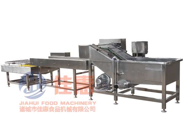 1、本機采用氣泡水浴清洗,可根據產品的產量來定做。設備中設有氣泡發生裝置,使物料呈翻滾狀態,去除產品表面農藥殘留。同時可加入適量的藥劑,進行消毒固色,漂浮物可從溢流槽溢出,沉淀物從排污口排出,達到清洗目的。