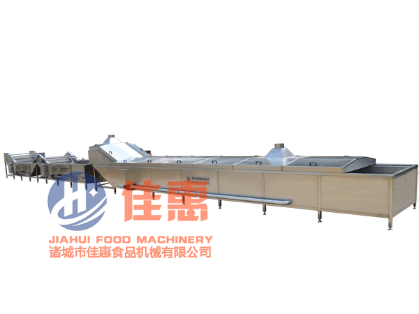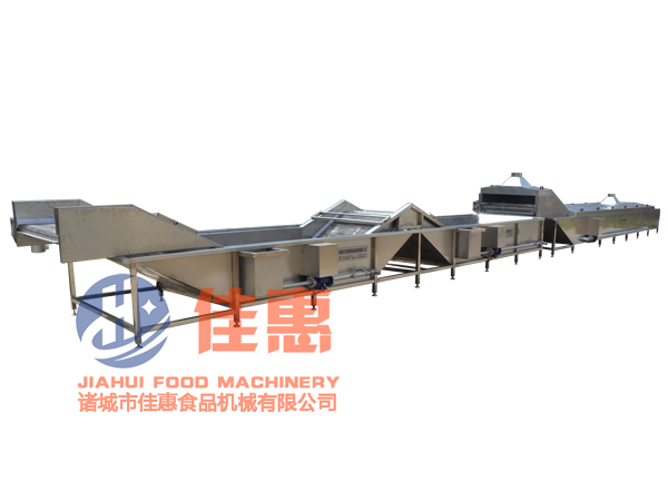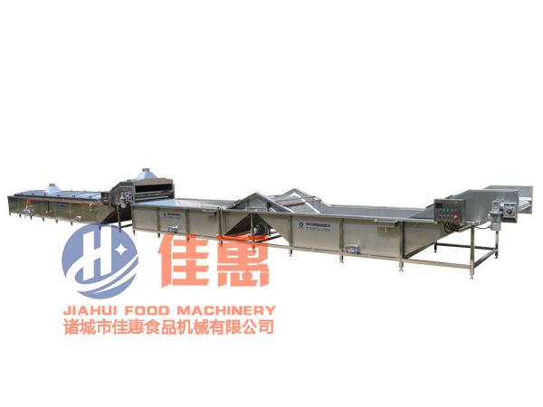 本流水線適用于適應于腌漬菜、低溫肉制品、酸奶、果凍等軟包裝食品及飲料的連續殺菌,再自動進入冷卻段進行快速冷卻,再進入振動風干線,之后可快速裝箱。在滅菌的同時,有效地提高了食品的品質,使物料色澤誘人、口感極佳。